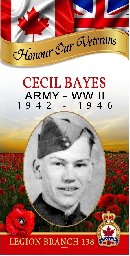 Cecil Harry Bayes enlisted on November 18, 1942, following a demanding harvest season. After completing training in Manitoba, he deployed overseas at the end of 1943.