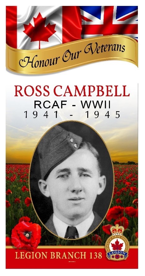 Colin Ross Campbell was born April 24, 1920, near Minnedosa, Manitoba. In 1941, after several years farming with his family, he enlisted in the Royal Canadian Air Force. Initially called for Army training, he later transferred to the RCAF and, due to eyesight limitations, remustered as an armourer.