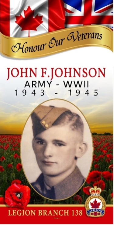 John Johnson enlisted in Regina, Saskatchewan, on August 2, 1943, at the age of 18. At the time, he was employed by the Canadian Pacific Railway and living in Walpole, Saskatchewan.