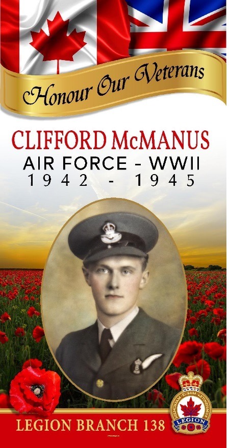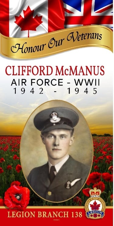 Clifford Neil McManus joined the Royal Canadian Air Force in August 1942 at the age of 21. After basic training in Brandon and wartime education upgrading in Winnipeg, he advanced through bombing and navigation training schools across Canada.