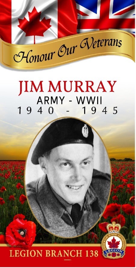 James Alexander Murray enlisted at Fort Osborne Barracks in Winnipeg on August 14, 1940, at the age of 19. Before enlistment, he worked as a store clerk in Shoal Lake, Manitoba.