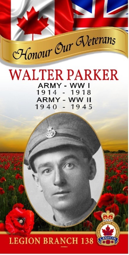 Walter Edwin Parker was born November 30, 1887, in Shelsley Kings, Worcestershire, England, the eldest of six children. He first came to Canada in May 1911 to work on a farm.