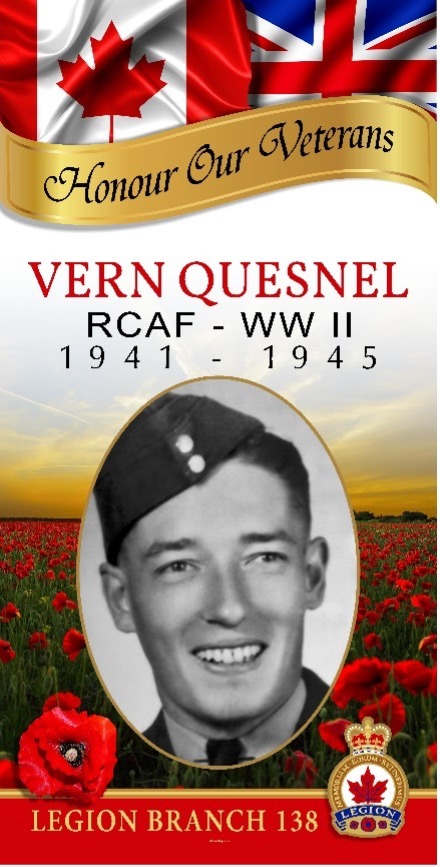Vernon Wesley Quesnel enlisted in the Royal Canadian Air Force in Winnipeg in May 1941 at the age of 21. His home was Minnedosa, Manitoba.