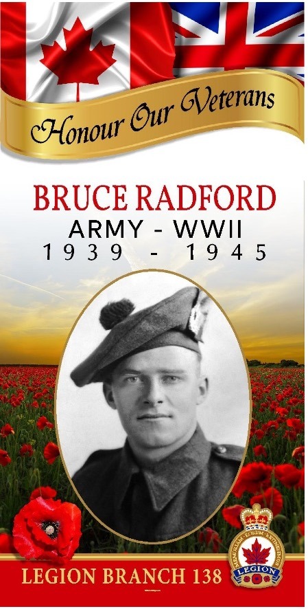 William Bruce Radford enlisted with Princess Patricia’s Canadian Light Infantry in Winnipeg on September 29, 1939, only weeks after the outbreak of the Second World War. He was 22 years old and employed managing a farm.