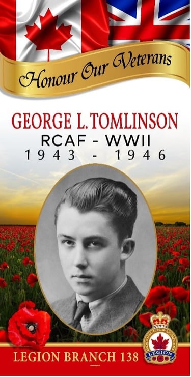 George Lawrence Tomlinson enlisted in the Royal Canadian Air Force in Winnipeg on November 30, 1943, at the age of 17 while living on the family farm in the Cameron District northwest of Minnedosa.