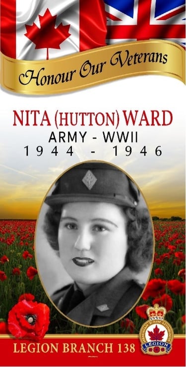 Juanita Ward (née Hutton) was eighteen years of age and living in Bethany, Manitoba, when she enlisted in the Canadian Women’s Army Corps on September 29, 1944, in Winnipeg, Manitoba.
